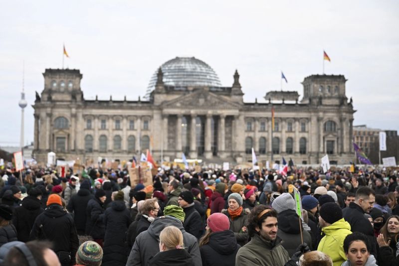 Zeci de mii de manifestanți au ieșit în stradă duminică, în centrul Berlinului, pentru a face apel la rezistență în fața apropierii care a început săptămâna aceasta între dreapta și extrema dreaptă din Germania, cu trei săptămâni înainte de alegerile parlamentare.