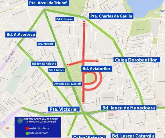 – Bd. Aviatorilor, pe ambele sensuri de circulaţie, între Piaţa Victoriei şi Piaţa Charles de Gaulle;