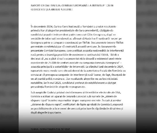 Raport devastator în Congresul american, care arată că alegerile nu au fost anulate din motivele invocate de autoritățile de la noi, ci Comisia Europeană s-ar fi implicat prin măsuri de cenzură. Astăzi, la ora 17:00, în Congresul american vor fi audieri, iar subiectul principal este anularea alegerilor din România.